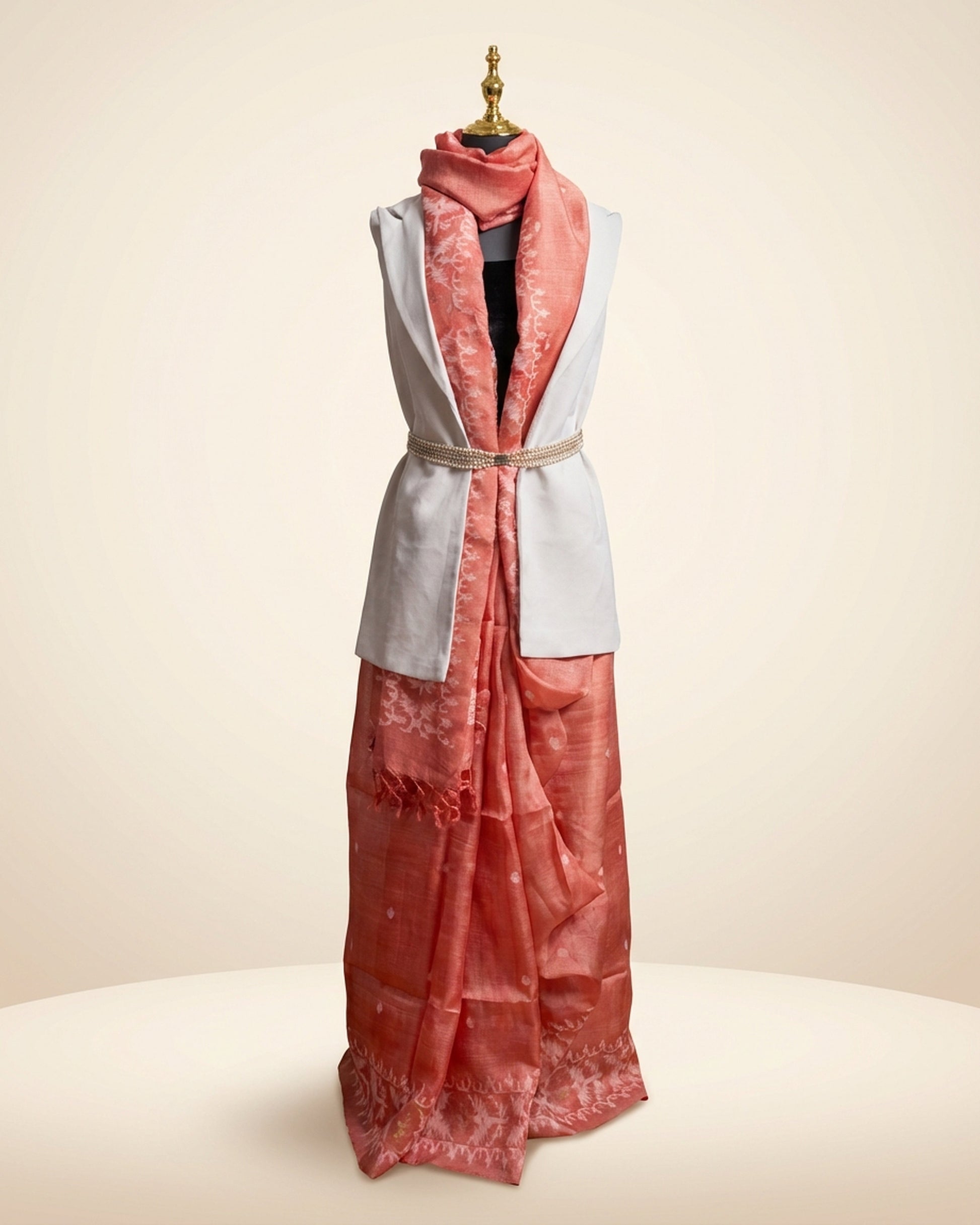 Tussar Jamdani Peach Saree