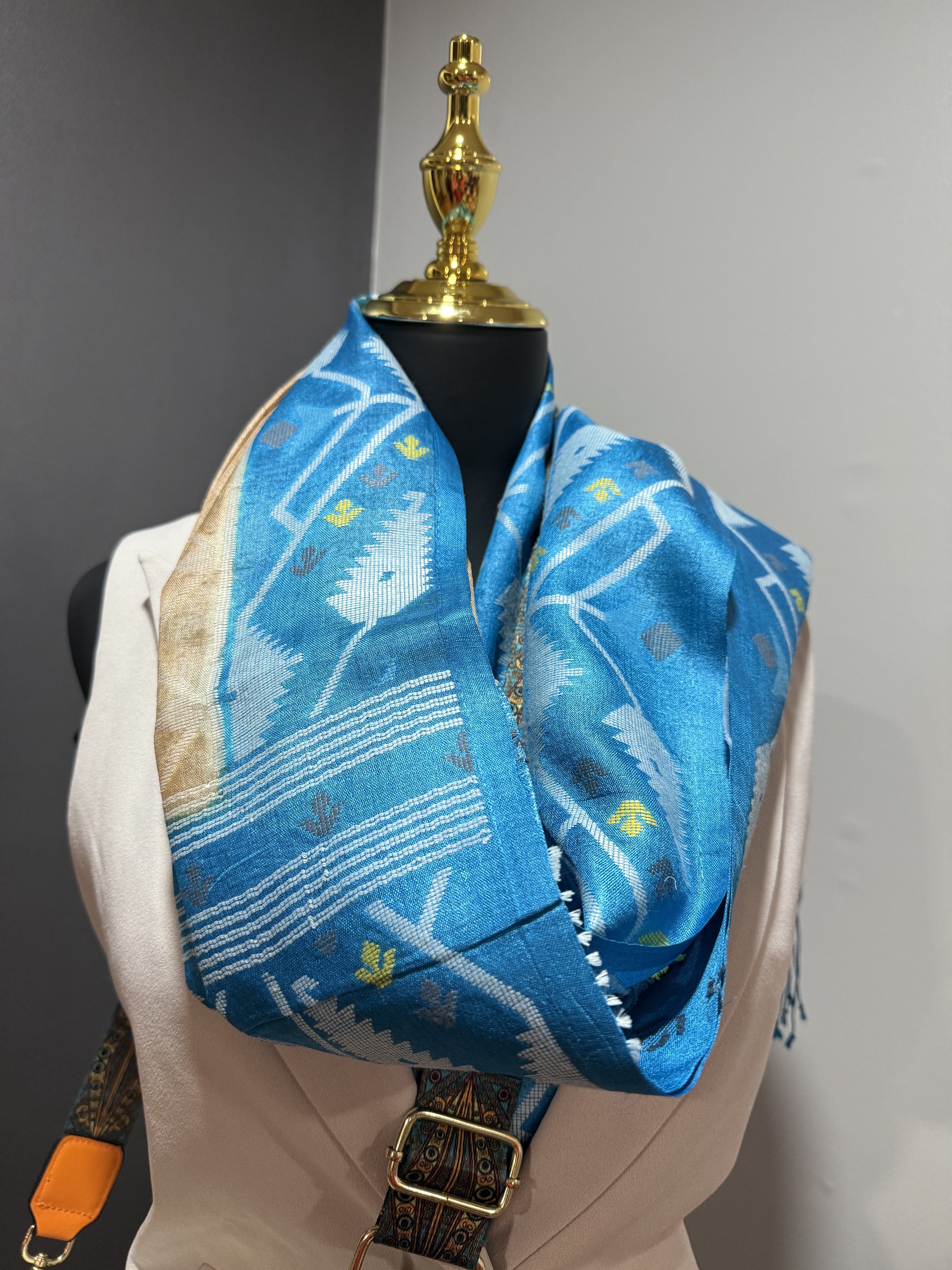 Tussar Silk Jamdani Teal Pallu Saree